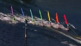 The team consists of 30 members of various ages, typically with up to 12 runners on the water simultaneously performing behind their boat