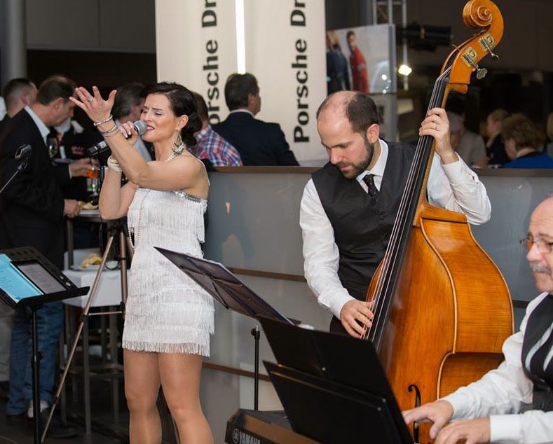 This versatile female vocalist can also perform at corporate events and private parties dressed up like iconic divas such as Marylin Monroe, Edith Piaf or Etta James. For this particular shows, she can roam around your venue interacting with guests and inviting them to sing along and join the fun.