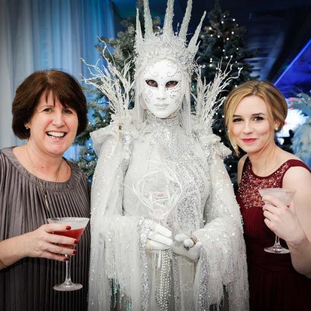 Dressed in Venetian masks with winter-themed costumes, our characters dazzle with their brilliant attention to detail and will be a hit at any event