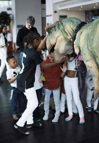 Having been hired by Colchester Zoo, the Natural History Museum, and even performing on MTV with Nicki Minaj, this versatile animatronic T-Rex can tailor its performance for any event or audience. For young children, children's parties, festivals, and birthdays, the dinosaur can be friendly, allowing petting and photographs. At adult and teen events such as corporate gatherings, music festivals, and Halloween parties, the 9ft beast can roar and showcase its scarier side.