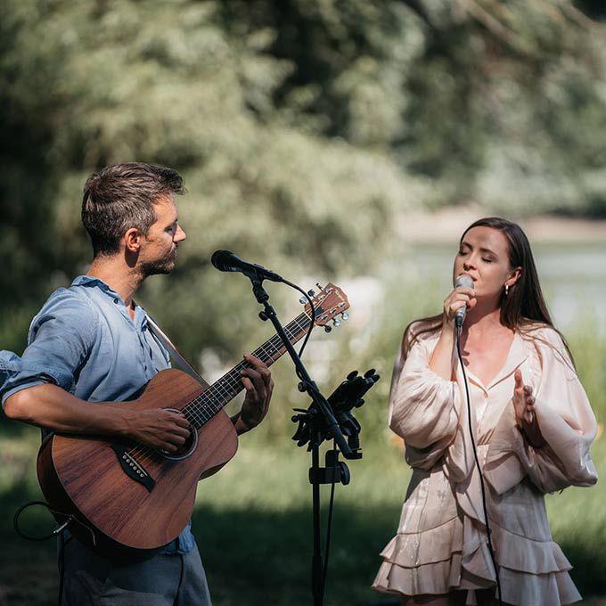 Our acoustic duo delivers a diverse repertoire encompassing various styles, including pop, jazz, rock, soul, 90s-2010s hits, retro-modern tunes, and Magyar.