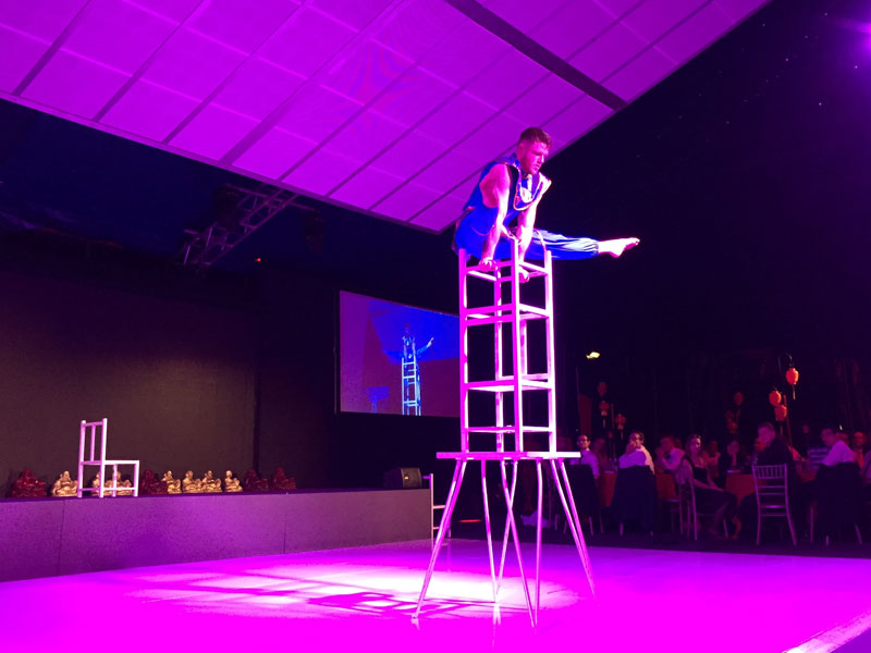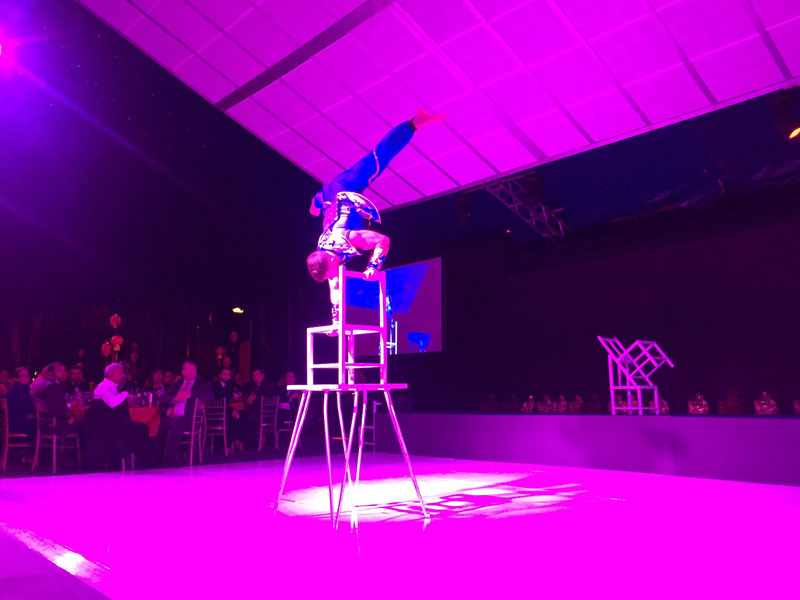 Perfect as part of a Chinese circus with additional acrobats for events and circus entertainment, it creates an immersive experience for corporate parties, dinners, and award ceremonies.