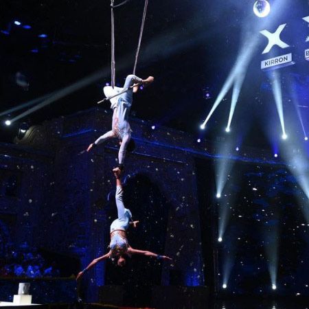 Captivating audiences with their daring performances, this fearless duo showcases an array of ground acrobatics and aerial acts, featuring thrilling stunts and drops.