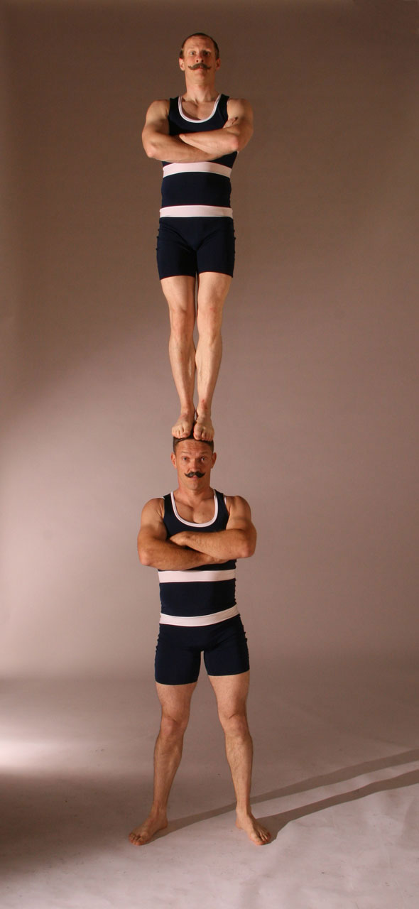 Dressed in vintage bathing suits and twirling their moustaches, this trio will leave spectators in awe as they execute daring acrobatic stunts. They will even involve guests in their acrobatic displays, much to everyone's surprise and delight! Ideal for vintage-themed events, festivals, private parties, and corporate gatherings, this dynamic trio can also be joined by a couple of acrobatic female bathing companions!