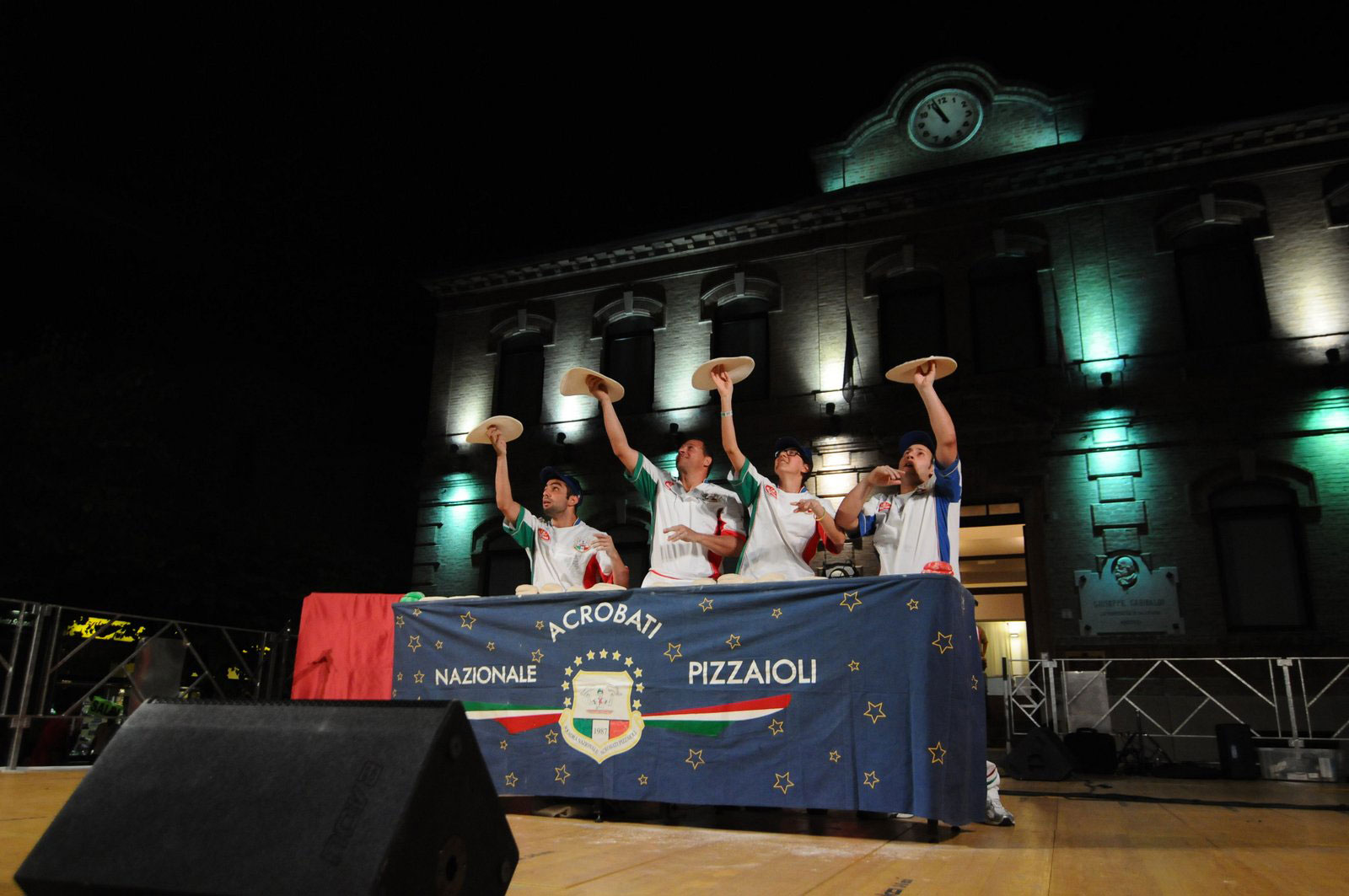 This team of Acrobatic Pizza Makers formed spontaneously; a group of friends who gathered in the evenings to enjoy and share their work experiences from a pizzeria.