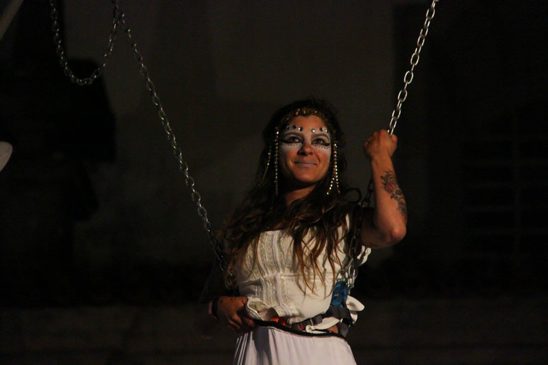 Particularly enchanting for nighttime events or dimly lit venues, our aerial performers can incorporate fire props like fire fans or sparklers, producing a warm, soft glow to illuminate your event.