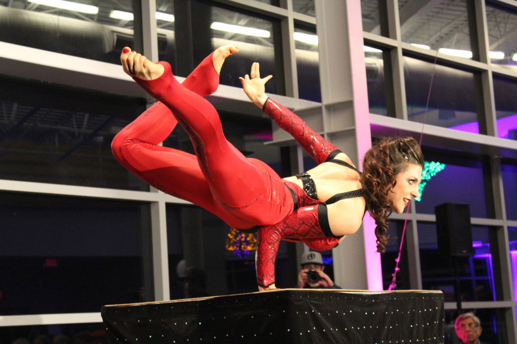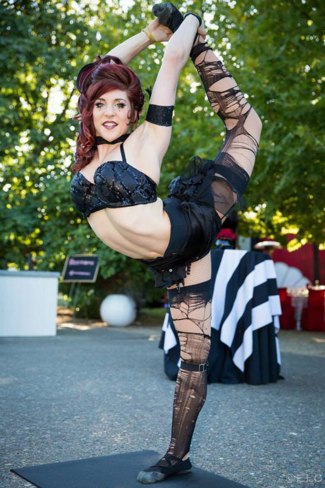 A natural performer and born thespian, she is proficient in elaborate and detailed hair, make-up, and wardrobe, ensuring her appearance is as stunning and impressive as her physical skills. She can adapt her performance to visually reflect any specific theme, from sports to Halloween, incorporating specific colors and costume adaptations to ensure she is the perfect addition to your event.