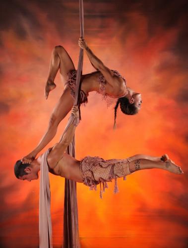 Showcasing incredible strength, balance, and agility, our talented duo will dazzle audiences with their beautiful choreography. They offer performances in the air using silks, hoops, trapeze, ropes, and the flying net, and can also perform incredible adagio and acrobatic routines.