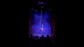 A professional aerial hammock performer with experience captivating audiences at top NYC venues like The Slipper Room and Red Pavilion