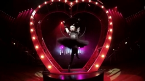 The versatile themed aerial hoop can support a diverse range of performers including burlesque acts, floor acrobats, aerialists, singers, and more. Performers can climb on the edges of the heart, hang from the center, and dance around it. Delivering an exciting visual impact, the cabaret prop can also be rented without performers or to complement a show of your choosing.