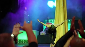 Our female aerial performer is a skilled artist with a unique performance style that captivates as she glides through the air.