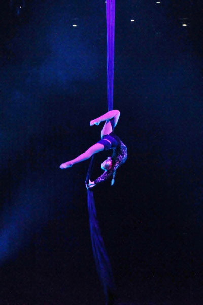 This enchanting spectacle is performed by a highly skilled acrobatic aerial dancer. Our talented aerial silks artist executes stunning moves and graceful figures with exceptional elegance, leaving viewers in awe with her breathtaking falls. Showcasing a remarkable blend of strength, balance, and coordination, this aerial performance is sure to be a topic of conversation for years to come.