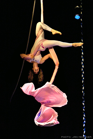 Aerialist and Acrobat Michelle is available as an aerial circus art performer or choreographer of aerial circus acts. New performances can be created in a theatrical style or a traditional circus style. Alternatively, you can choose and/or customize an existing act.