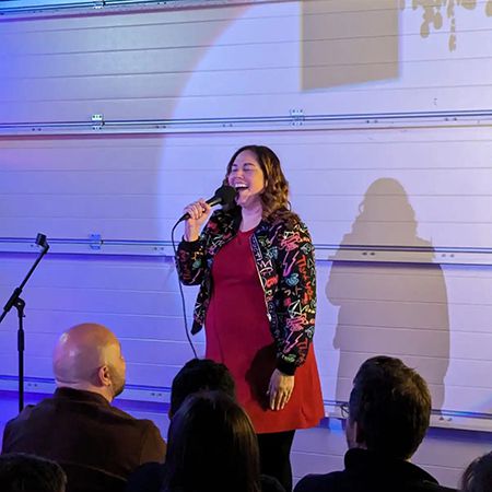 A former founder of a Frankfurt theatre studio, with years of acting and improv experience, she now performs at corporate events and private venues