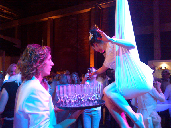 Adorned in exquisite white gowns with feathered wings and performing on elegant white silks, these professional aerialists will bring a touch of grace to drinks receptions, corporate functions, private parties, ceremonies, and themed events.