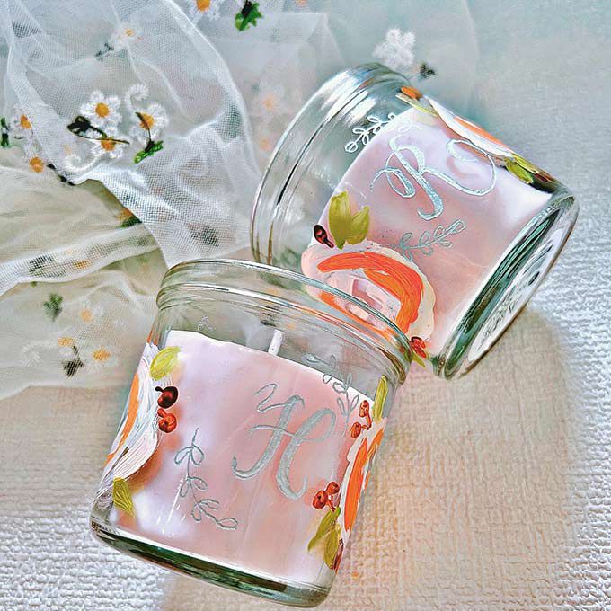Our artist is skilled in working with various materials, such as engraving glass bottles, painting on wax candles, and decorating leather products, among others.