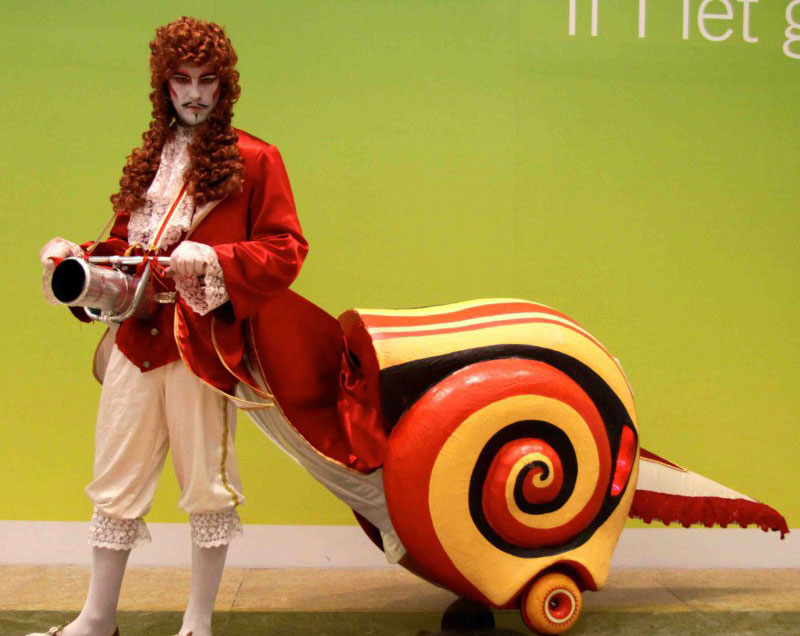 Our brilliant artists, with a wealth of experience, will mix and mingle with the crowds at your special occasion, interacting with passers-by, posing for photos, and causing plenty of amusement with their original act. These regal invertebrates will be the talking point of your event, offering a fantastic visual spectacle. Their large, brightly colored shells and French Renaissance-style clothing are certain to pique guests’ interest and encourage them to approach these stately snails.
