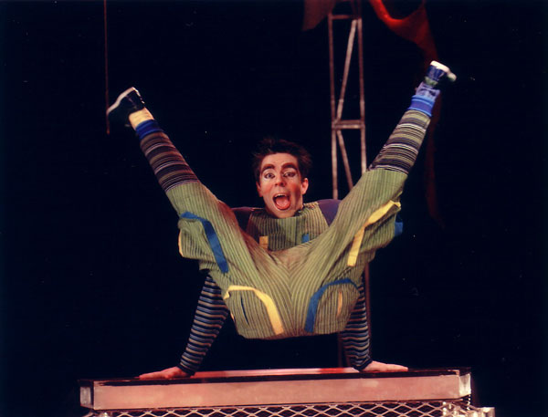 A professional circus artist specializing in hand balance, acrobatics, and trampoline flying; our skilled performer will delight audiences as he portrays a young boy restlessly watching television in an oversized armchair in this acrobatic stage show. Adopting every conceivable position, this entertaining acrobat flicks through TV channels until the music from one channel inspires him to get up and move to the rhythm.
