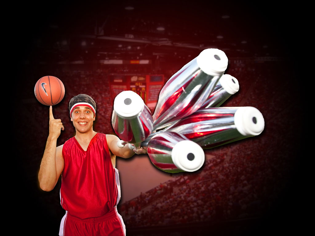 Josh's basketball act runs for 6 minutes, but he can also present a 30-minute comedy and juggling show that includes multiple sports, as well as the juggling of knives, fire, and bowling balls!