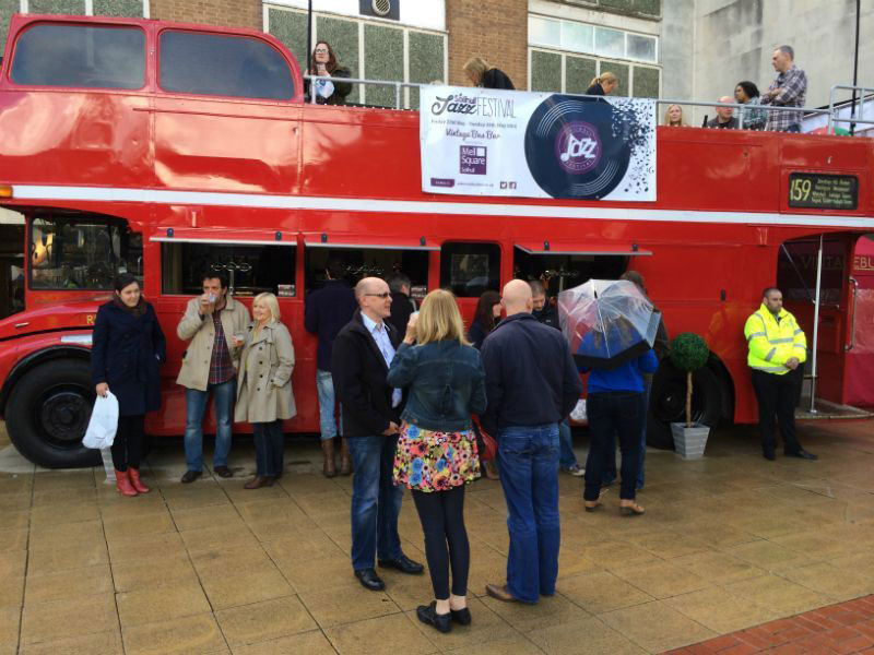- A pop-up bus bar branded in traditional London Transport style boards, either fully or partially wrapped in vinyl, or with banners to suit clients’ requirements