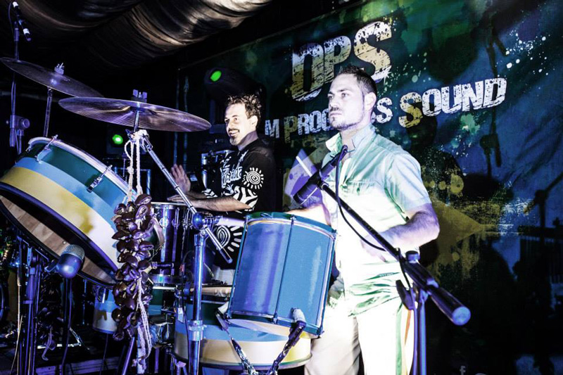 On stage with the rhythmic ensemble are a bassist, guitarist, keytarist (keyboard shaped like a guitar), and singer. The vocalist dons the iconic costumes of Brazilian carnival dancers, and together the group radiates energy. The basic lineup includes six members, but can expand to ten, making this party band unmatched in its vibrancy.