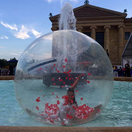 Our bubble contortionists can perform on water for a breathtaking display that adds a WOW factor. They can also fill their bubbles with colored confetti, feathers, rose petals, playing cards, snow, and more to provide a customized performance that fits your event perfectly.
