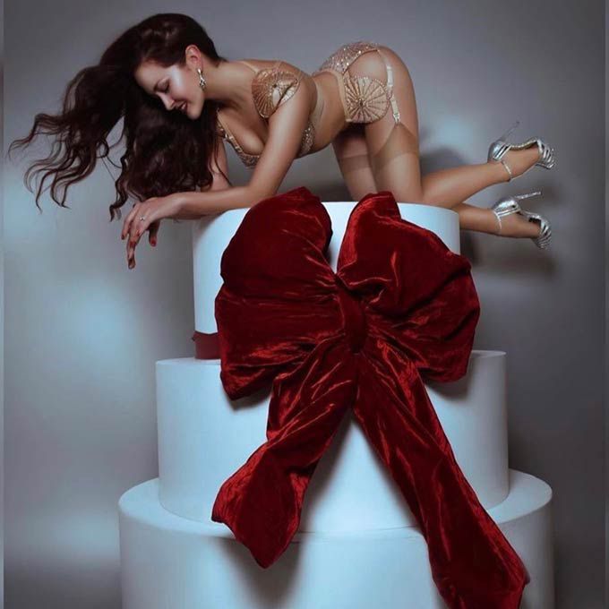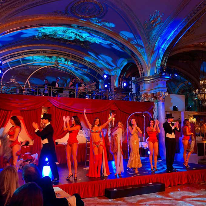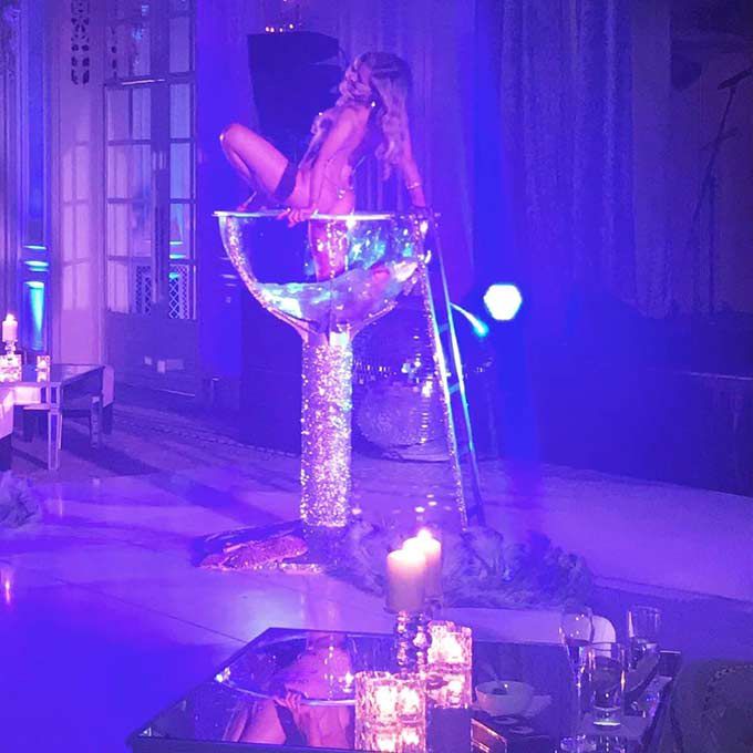 Our elegant burlesque performer can be booked with premium props and staging, including a Giant Martini Glass or a Pop Out Birthday Cake.