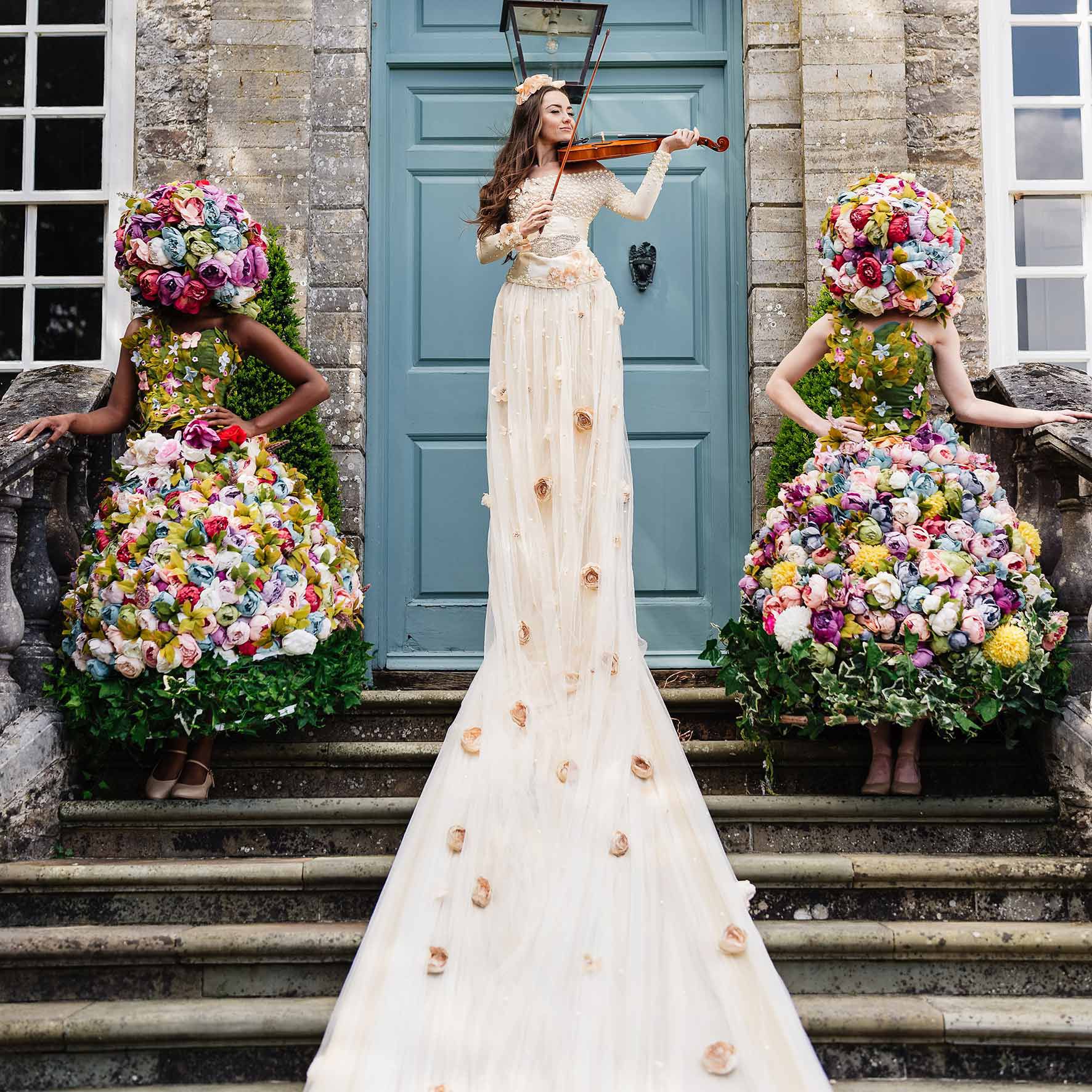 A vision of floral elegance, luxury, and opulence, our violin hostess adds a unique aesthetic to a wide range of events including weddings, corporate receptions, garden parties, and Parisian, floral, and spring themed events. Whatever your event or theme, she is the perfect way to welcome guests in style!