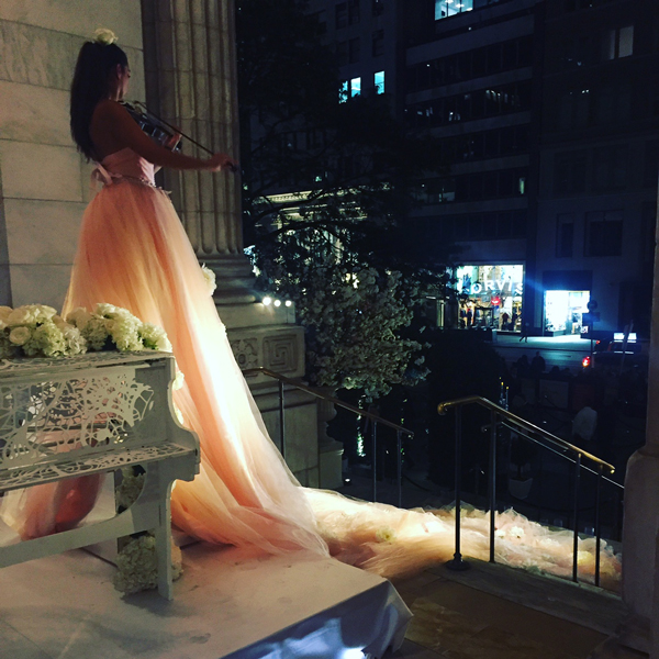 Our captivating violin hostess was initially created to perform at the prestigious Knot Gala in 2016, held at the New York City Public Library. Designed to enchant guests before they even entered the main event, she was a resounding success with attendees and garnered significant attention on social media.