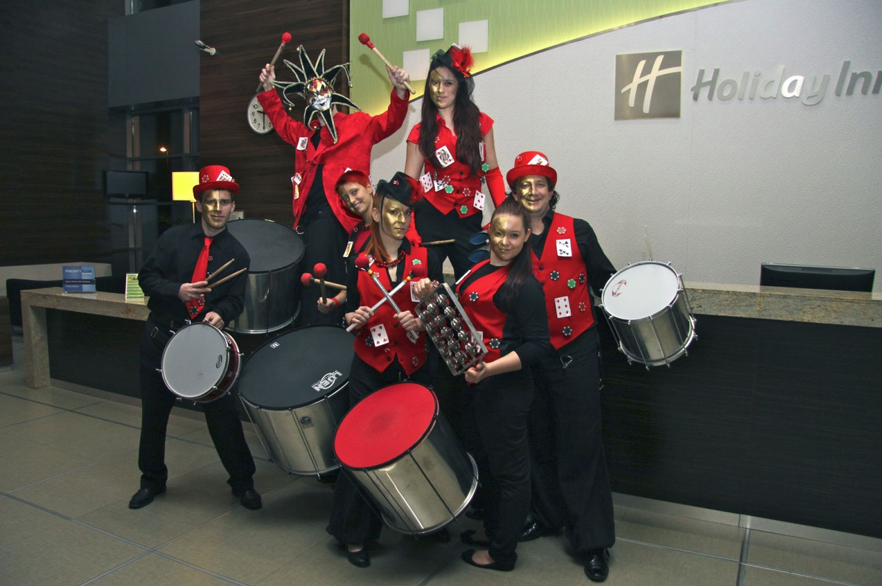 This drum orchestra radiates enthusiasm that is impossible to miss. Bursting with energy, rhythm, joy, and movement, all showcased in authentic CASINO style costumes. With their high-energy music, captivating humor, and professionalism, the band will swiftly have audiences up and dancing!