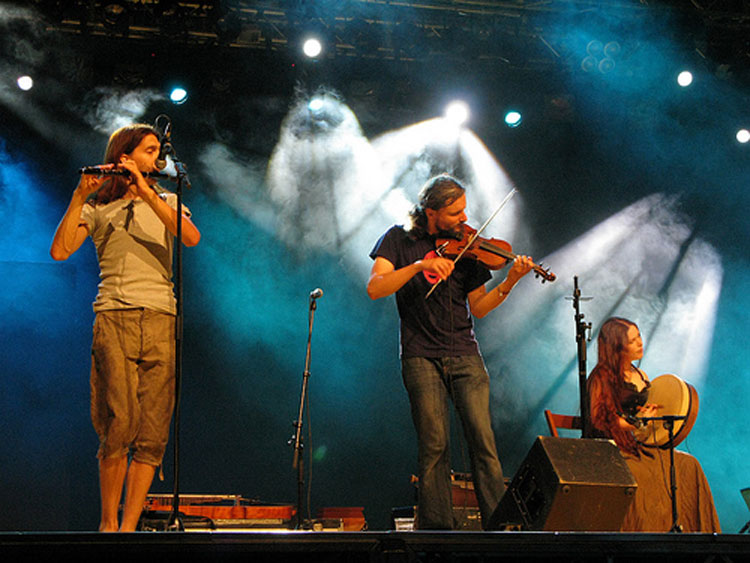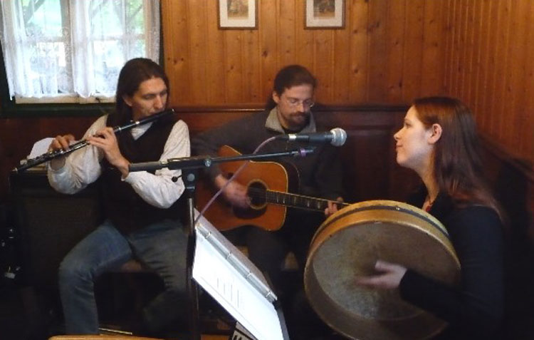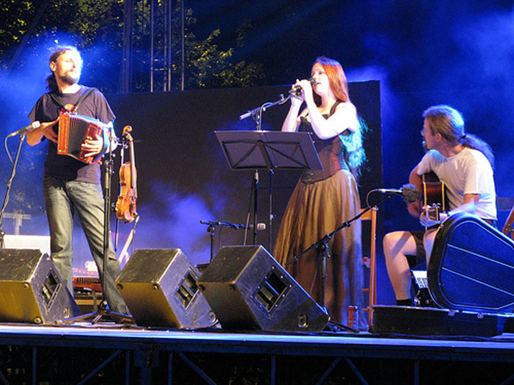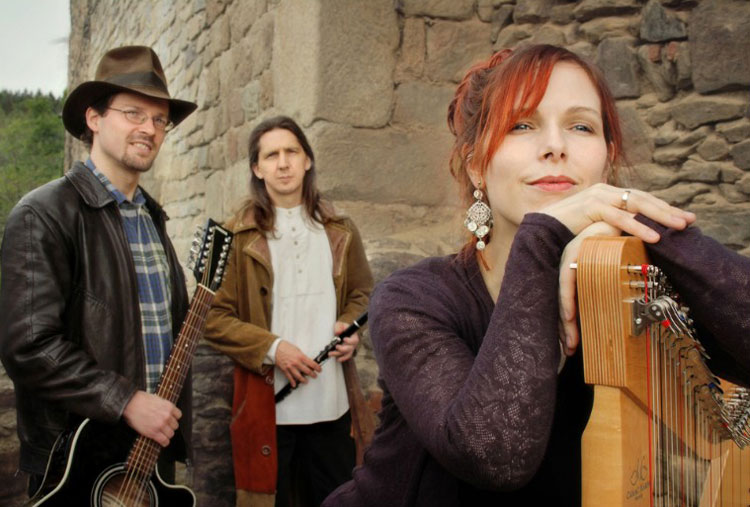 In addition to atmospheric ballads and rhythmic songs in Gaelic language, our Celtic band also plays Irish dance music and instrumental pieces featuring flute and accordion, accompanied by harp, guitar, and drums.