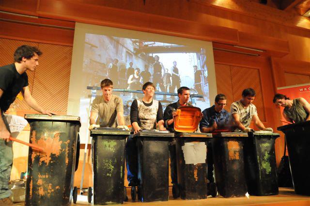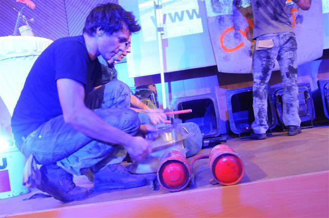 The ensemble unleashes boundless creativity, embracing even the most unconventional ideas. In 2010, they debuted their latest program "Mechanics," which portrays a day in a garage. From working on the engine and body to taking a lunch break, cleaning the garage, and more, everything is expressed instrumentally. They make use of car doors, hoods, bumpers, engine blocks, gas cans, hubcaps, tires, fire extinguishers, and much more.