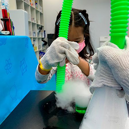 Options range from 30 to 60 minutes and include up to 12 jaw-dropping experiments like slime, dry ice, bubbles, and foaming reactions