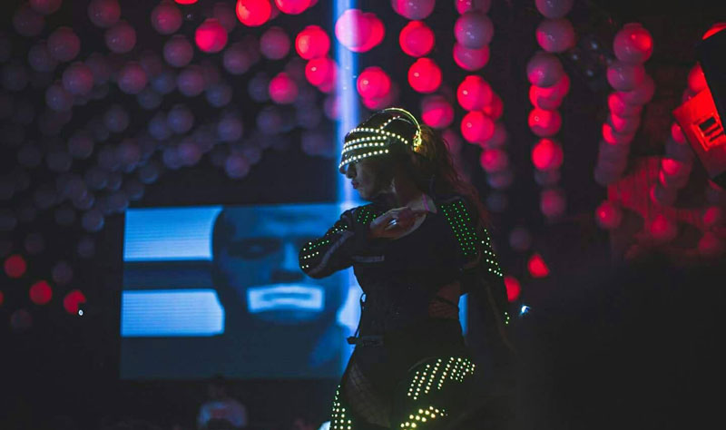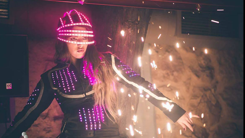 If LED stage shows are what you envision, our nightclub entertainers are ready to don their LED suits, helmets, and accessories to illuminate your venue. Available in various lineups, our talented performers can be booked for both solo and group acts.