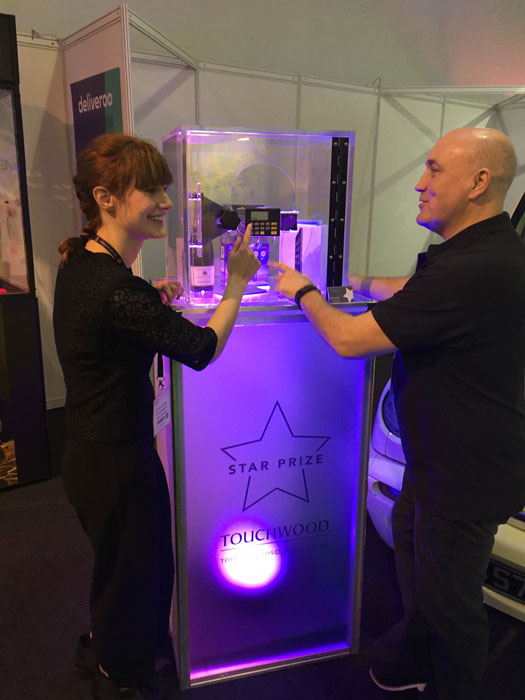 Our unique prize machine is equipped with LED effects and polycarbonate panels that can be customized with your company branding, a dynamic promotional concept that fits within any marketing budget. The perfect interactive gaming experience for exhibition stands, retail promotions, product launches, private parties, festivals, and much more.