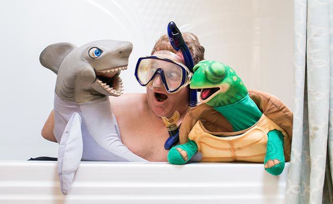 Puppets include a shark, turtle, baby, bear, dog, zombie, elephant, alien, dragon and more to please a wide audience and suit a variety of themes