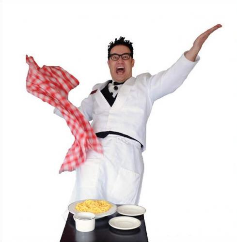 This formal yet clownish waiter creates chaos, laughs, and unforgettable moments. Whether performing as a stage act or mingling among guests, he brings his comedic antics to events of all sizes.
