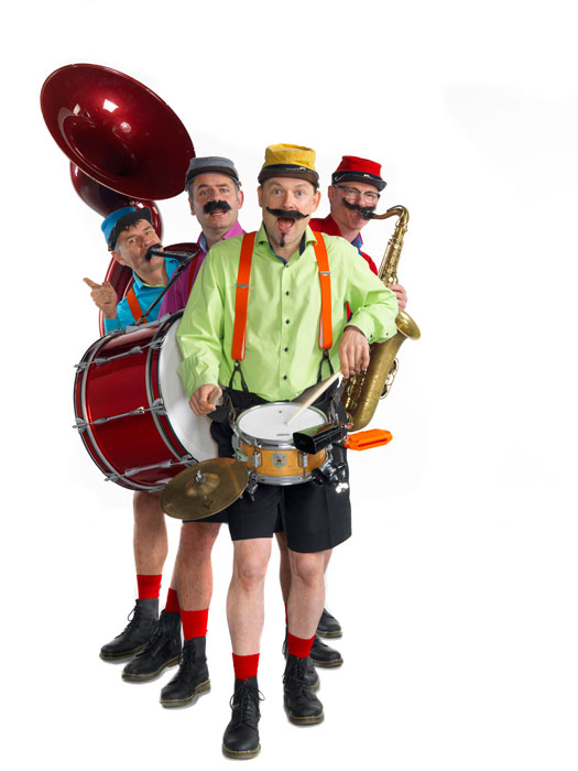 Available as a trio or quartet, this acoustic comedy marching band features instruments like percussion, banjo, tuba, and saxophone. They perform a blend of marching band music, jazz, beloved classics, improvisations, and even pop songs. Their comical renditions include hits from Lady Gaga, Madonna, Black Eyed Peas, LMFAO, and Clean Bandit.