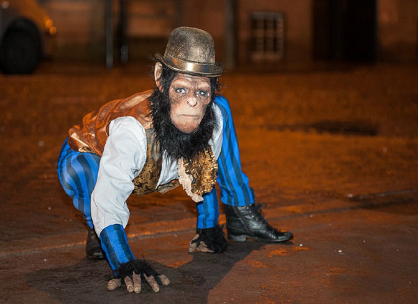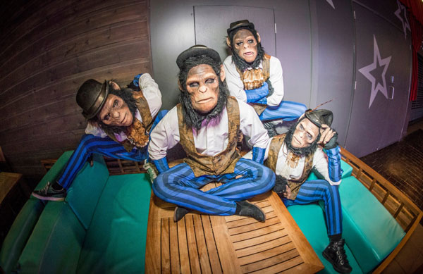 Hilarious, entertaining, and highly interactive, our roaming chimp characters excel as meet and greet entertainment. If booked as a group, they can even host a tea party. Our gentleman chimps have also been known to perform an angle grinding act when requested.