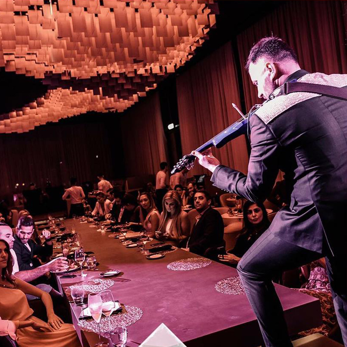 From sophisticated background music to authentic party anthems, our contemporary violinist covers it all. Perfect for corporate events, product launches, after-dinner shows, weddings, exhibitions, and social gatherings. His previous clients include Hublot, Porsche, Gucci, and Jimmy Choo. He has also been a resident performer at prestigious venues like Nikki Beach, Buddha Bar, Pacha Ibiza, Qbara, Crystal Club, and Sky Bar Bahrain.