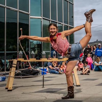 Book this country circus show! Delight guests of all ages with a one-woman act featuring rhythmic acrobatics, witty banter, and country-style comedy