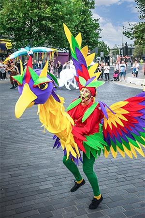 Our spectacular Creatures of the World parade features delightful, costumed animal characters and engaging interactive performers.