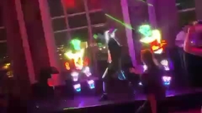These Dancing LED Robots will steal the show! Their incredible costumes light up in different colours and project lasers around the room!
