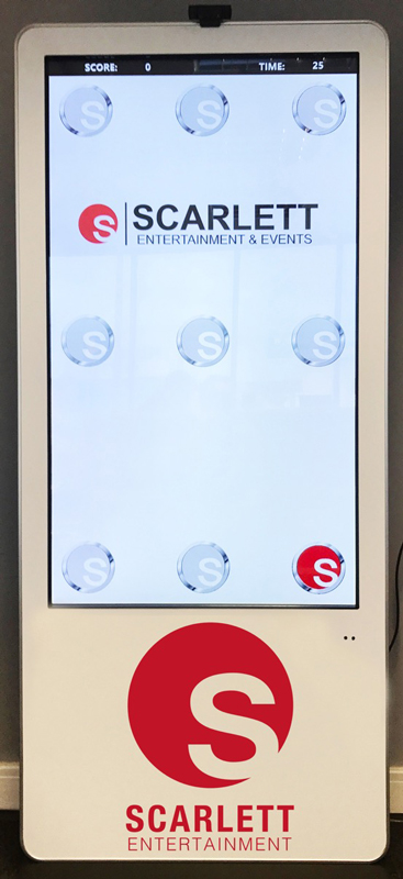 The game is fully customizable, making it perfect for corporate events. Our expert team can incorporate your logo, images, or even your corporate colors into the screen, ensuring a tailored experience. As shown in the images above, we customized it with the Scarlett Entertainment logo, resulting in a stunning display.