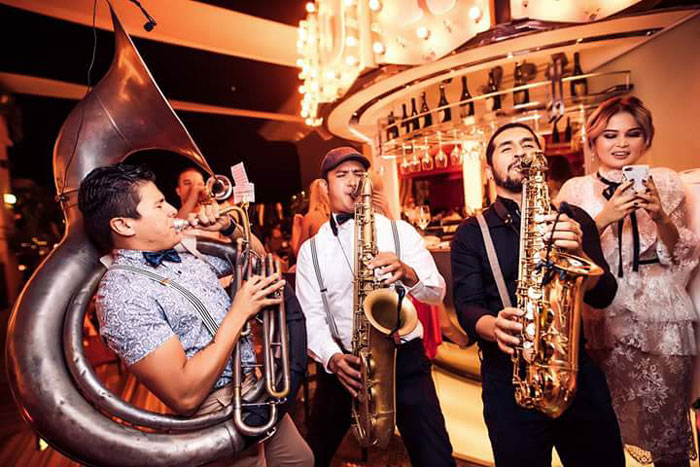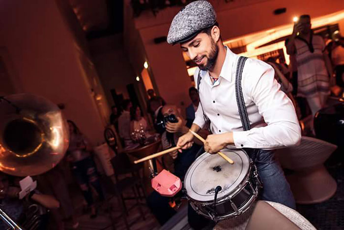 Our Dubai brass band offers unforgettable event entertainment with their high-energy performances and unique twist on authentic brass music. Featuring some of the United Arab Emirates' finest brass musicians, this five-piece live band includes Tuba, Sax Tenor, Sax Alto, Trumpet, and Drums. They perform a variety of music genres, from reggae, rock, mardigrass, and samba to jazz and top 40 hits. Providing live entertainment suitable for a diverse audience, this band offers an extensive repertoire of songs and set lists tailored to your requests, ranging from Daft Punk and Ed Sheeran to Michael Jackson and Ricky Martin.