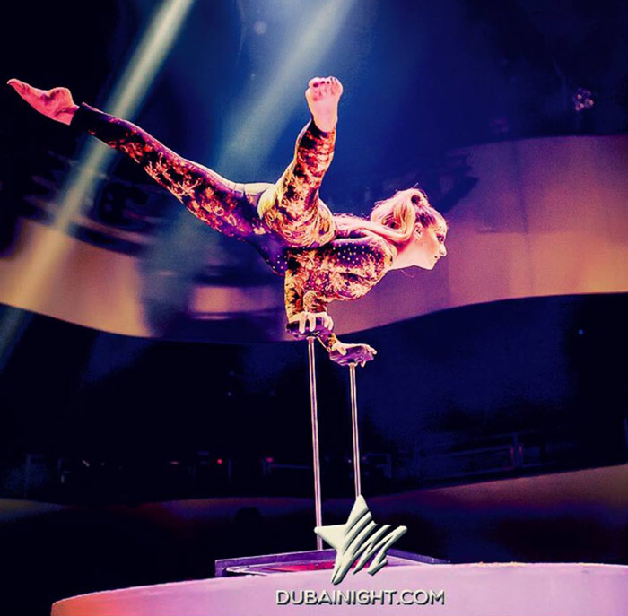 Originally hailing from Italy, the Dubai Female Hand Balancing Act is performed by a former Olympic Gymnast who competed for the Italian National Team. Since her Olympic days, she has evolved into a multi-talented female acrobat, showcasing her skills at events across Europe, South America, Australia, and the Middle East.