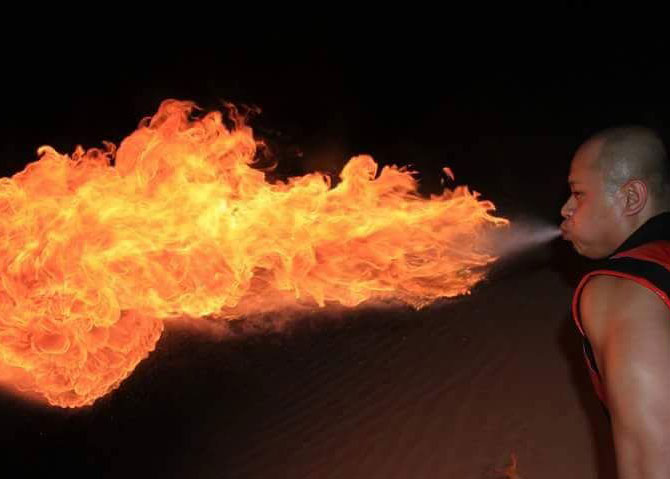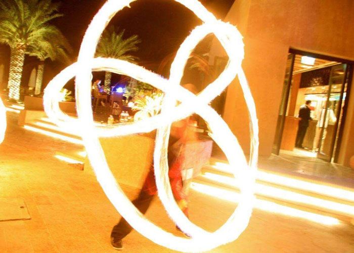 Performing internationally across Asia and the United Arab Emirates, our fire act has lit up numerous high-profile events, VVIP galas, festivals, and large corporate functions for esteemed clients including Samsung, Fujitsu, Alienware, and Huawei. With their professionalism and sterling reputation, our Dubai fire performers are regularly booked for exclusive Royal Family parties and play a key role in the opening ceremonies of the Dubai World Cup.