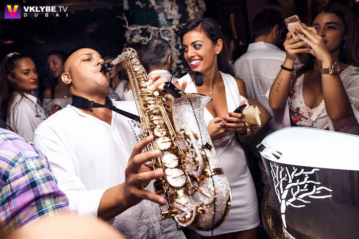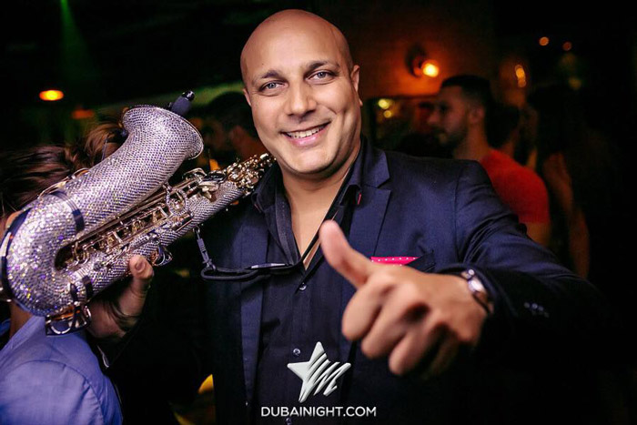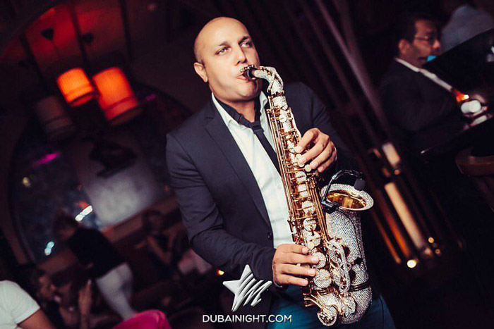 Nothing embodies luxury more than diamonds, and nothing exudes elegance quite like a talented saxophonist with a diamond-encrusted saxophone. This freelance sax player perfectly fits this description. His dazzling instrument, adorned with hundreds of Swarovski crystals, sparkles under various lights. He is the only musician in Dubai with such a magnificent instrument.