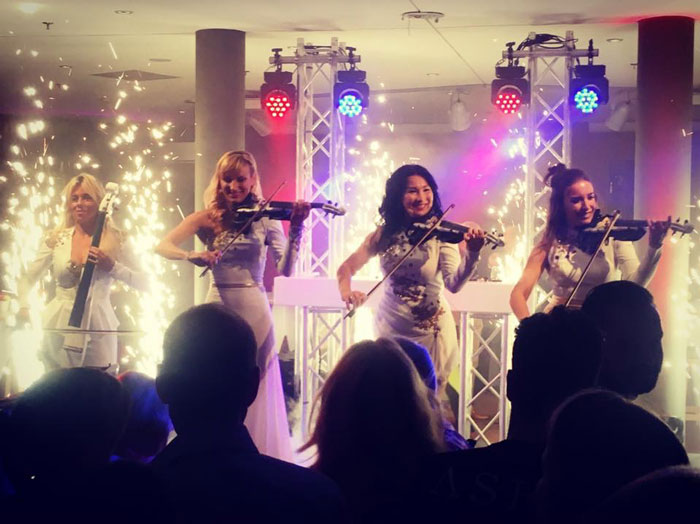 This high-end electric string group is composed of four accomplished female musicians, each from diverse backgrounds and nationalities. Their varied experiences make them exceptional at connecting and engaging with audiences globally, conveying impactful emotions through their performances. Perfect for corporate events, their electric string music is loud yet beautiful, awakening crowds and providing a modern ambiance compared to traditional string quartets, making them ideal for events with large audiences.