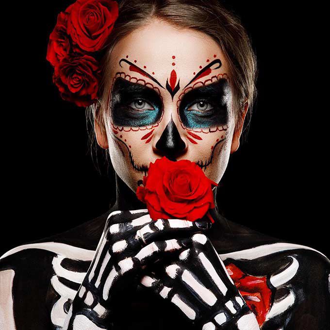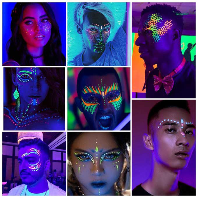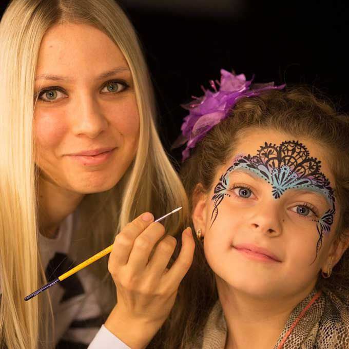 Our face and body painter can customize her designs for various events and themes, ranging from vibrant floral festival patterns to eerie Halloween looks!